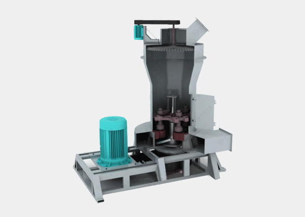 物料研磨后,風機將風吹入主機殼內(nèi),吹起粉末,經(jīng)置于研磨室上方的分析器進行分選,細度過粗的物料又落入研磨室重磨,細度合乎規(guī)格的隨風流進入旋風收集器,收集后經(jīng)出粉口排出,即為成品。風流由大旋風收集器上端的回風管回入風機,風路是循環(huán)的,并且在負壓狀態(tài)下流動,循環(huán)風路的風量增加部分經(jīng)風機與主機中間的廢氣管道排出,進入小旋風收集器,進行凈化處理。